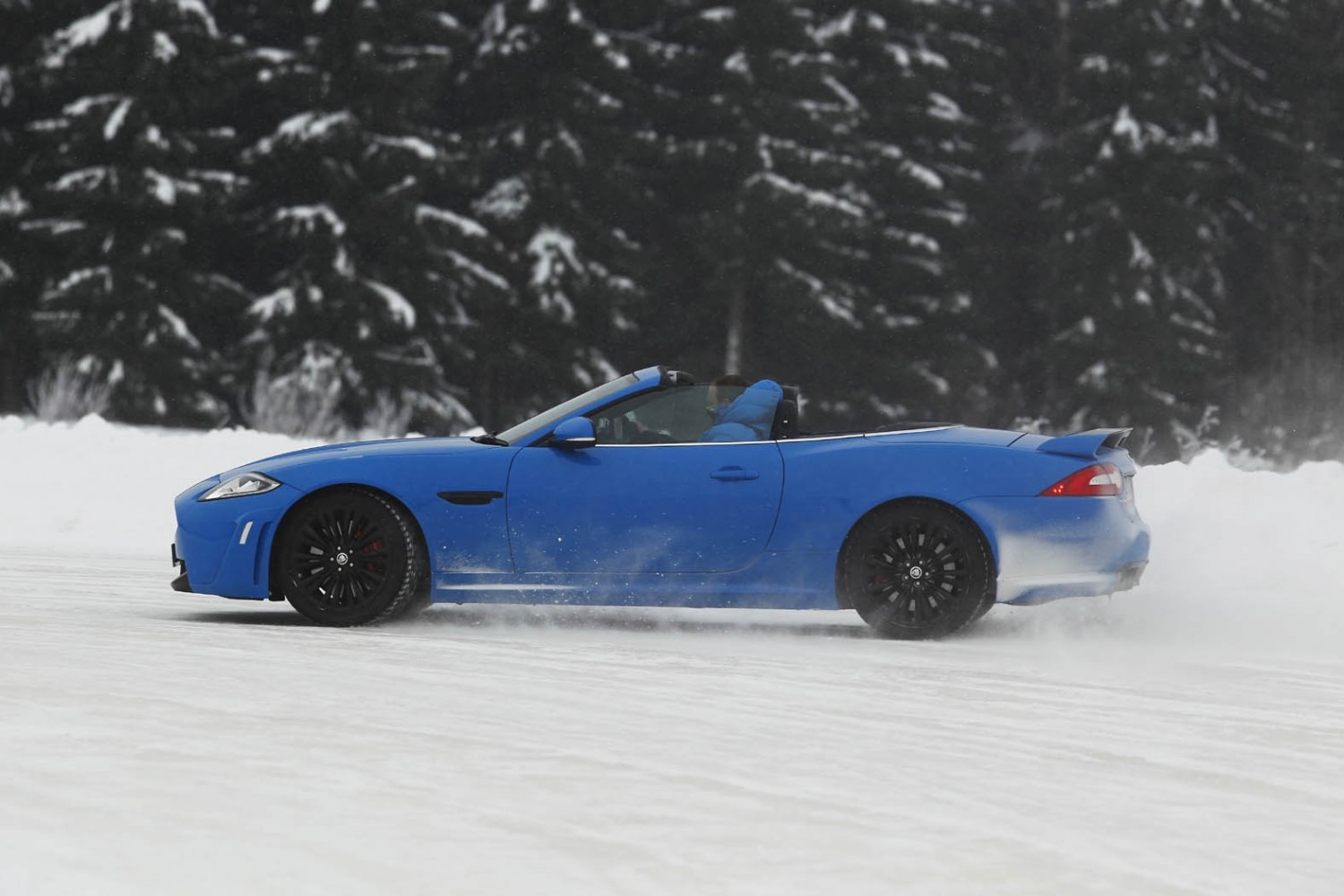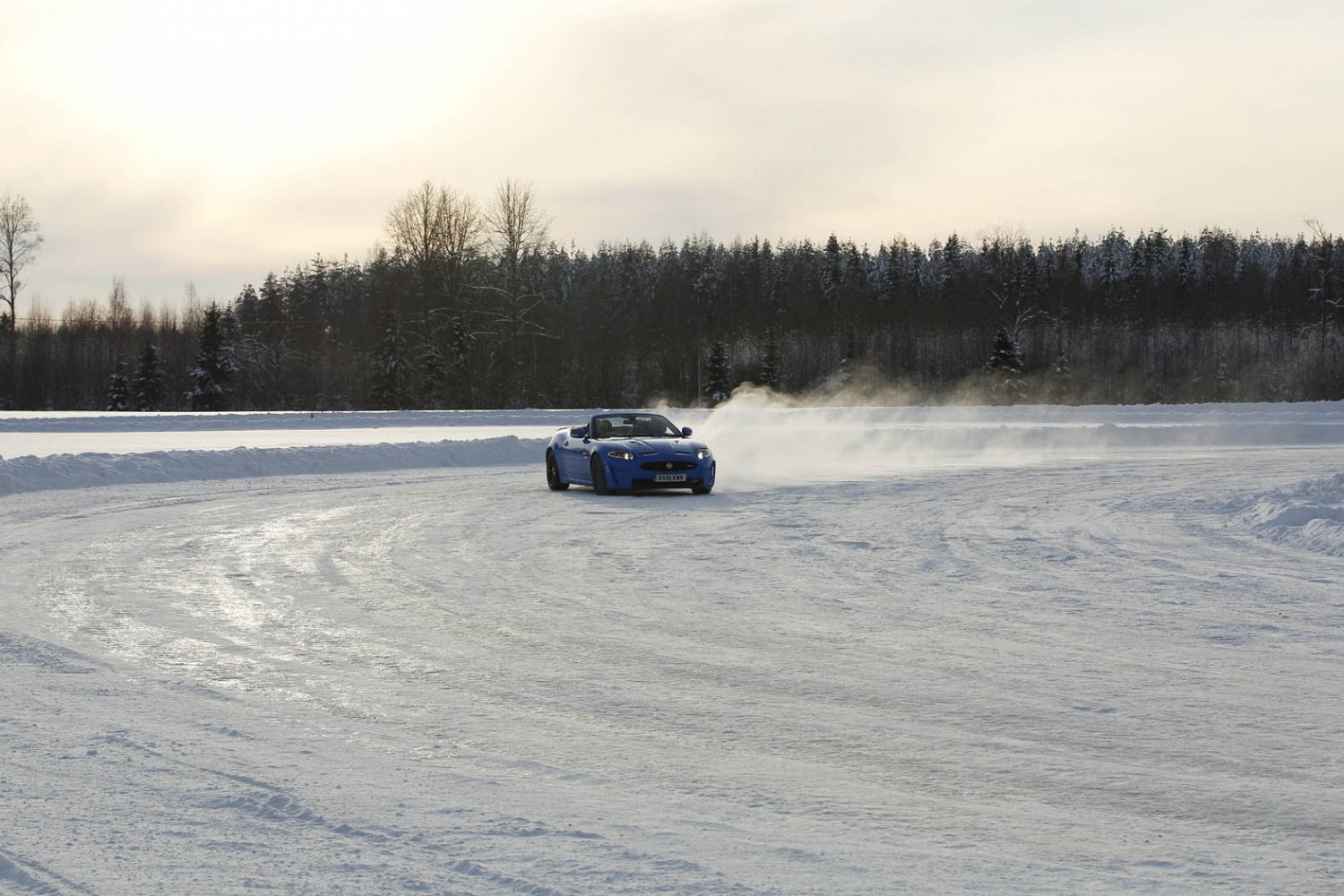 Drifting sideways around a purpose-built ice track with traction control off, the balance of this high performance version of Jaguar's XK sports car came into its own.