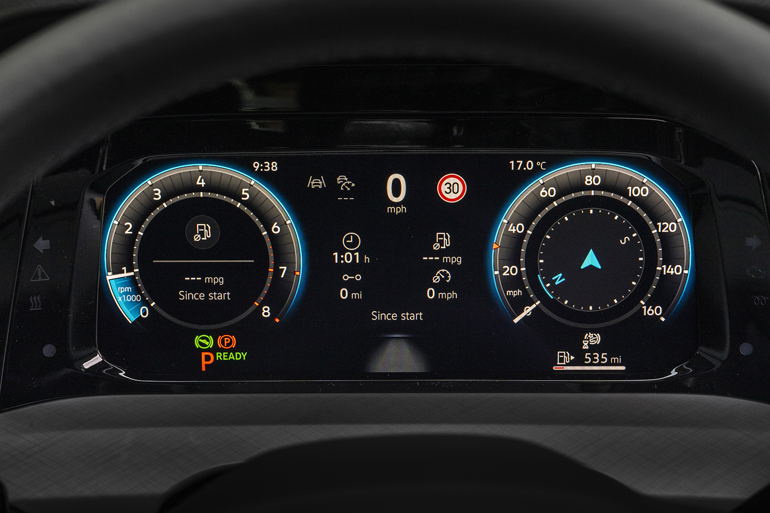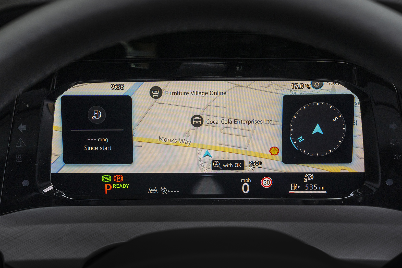 Secondary controls are now tightly grouped on the wheel spokes or a small fascia panel to the right of the wheel, with the usual lights and wiper stalks just behind on the column, but partly hidden nevertheless.