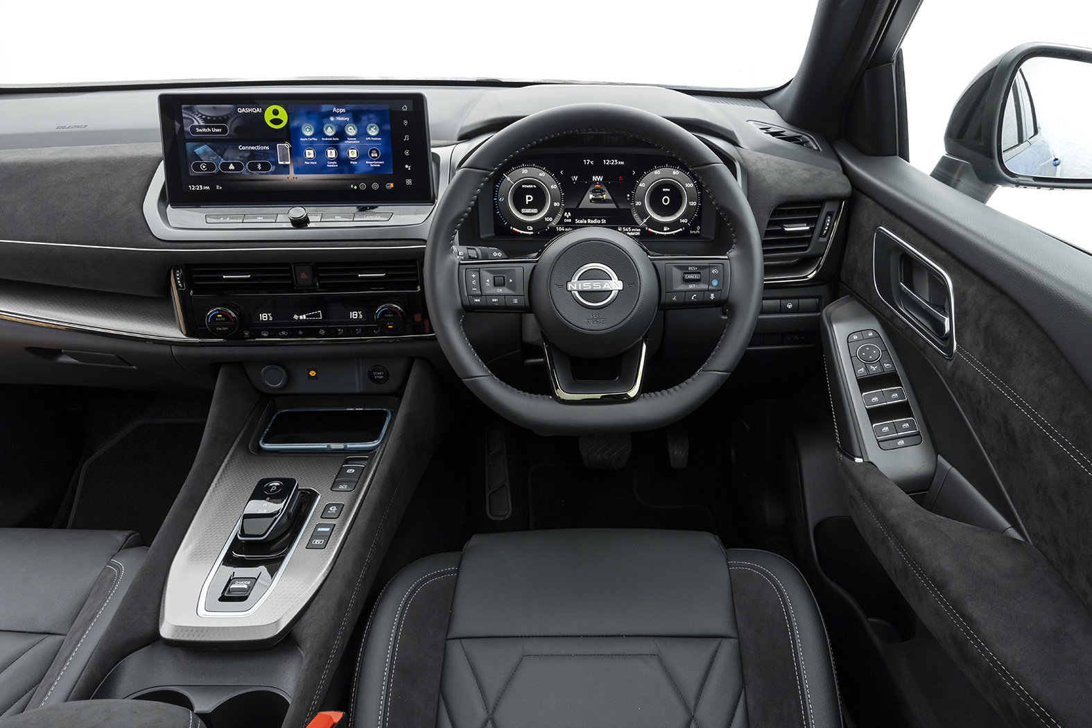 A 12.3-inch Nissan Connect Display dominates and offers access to onboard features like the navigation system, Apple CarPlay and Android Auto smartphone connectivity, Bluetooth with audio streaming and much more.