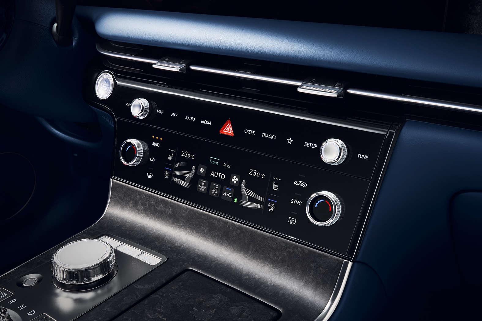 This system supports over-the-air (OTA) updates and can be controlled via a new crystal console dial, voice recognition, or the heated three-spoke steering wheel.