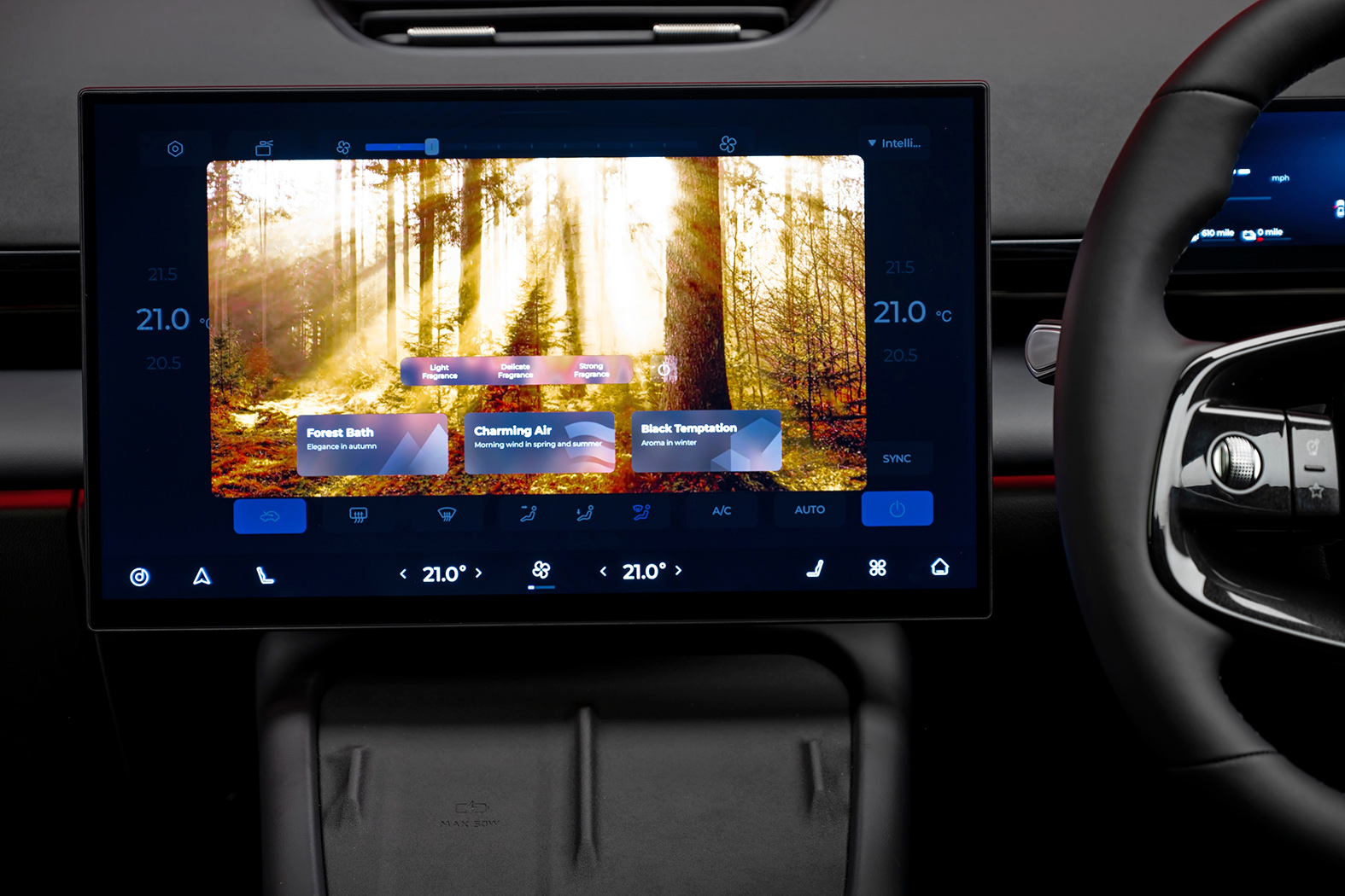 The main display is paired with wireless Apple CarPlay, Android Auto with over-the-air updates as standard. The driver can see the 540-degree camera with transparent chassis view, as well as easily swipe down to enable the 21 ADAS systems and custom preferences.