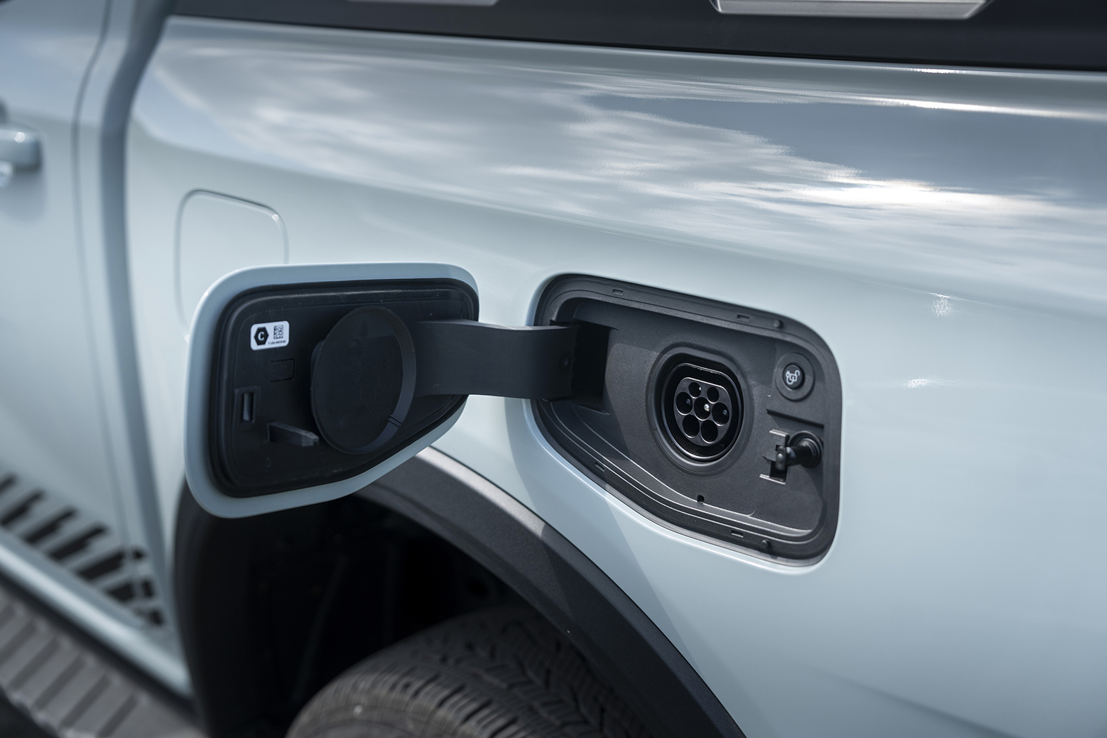 Two filler flaps on the nearside rear wing are the main visual clues that the vehicle is a PHEV. One pops open to reveal the charging port for the battery, while the other is the fuel filler and is released with the push of a button on the dashboard.