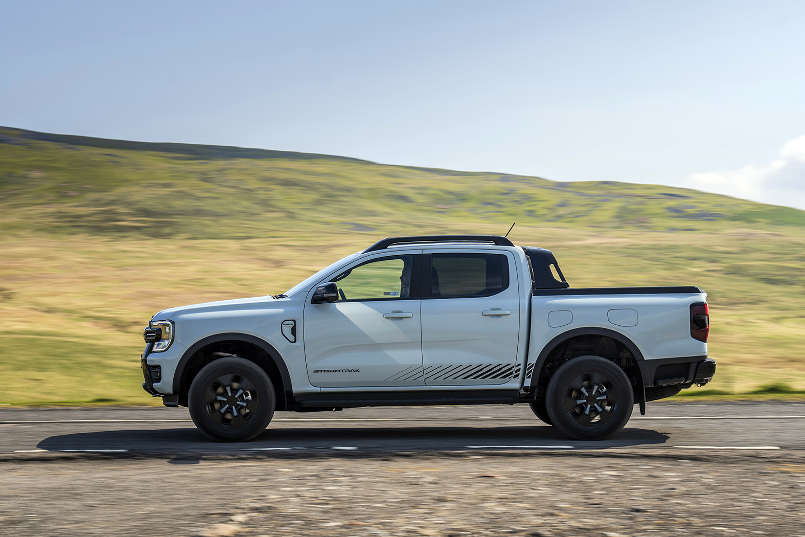 From the outside, not a lot looks different, although the new Stormtrak trim is exclusive to the PHEV model (it also comes in XLT and Wildtrak trims), Chill Grey is a cool blue hue that's unique to the Stormtrak and black is also available while there are unique wheel designs to make the petrol-electric model stand out.