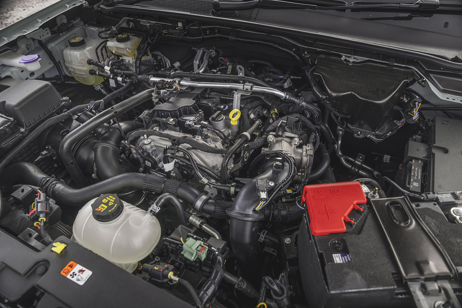 These are used to refill an 11.8kWh battery and a 70-litre fuel tank respectively, with the latter supplying fuel to the 2.3-litre turbocharged four-cylinder that we've seen in other UK Ford models.