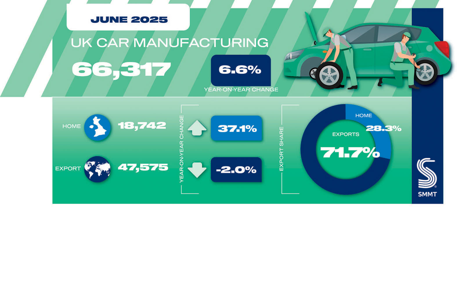 UK car production remains export-focused, with 76.9 per cent of output headed overseas year-to-date and greater certainty now returning to key markets.